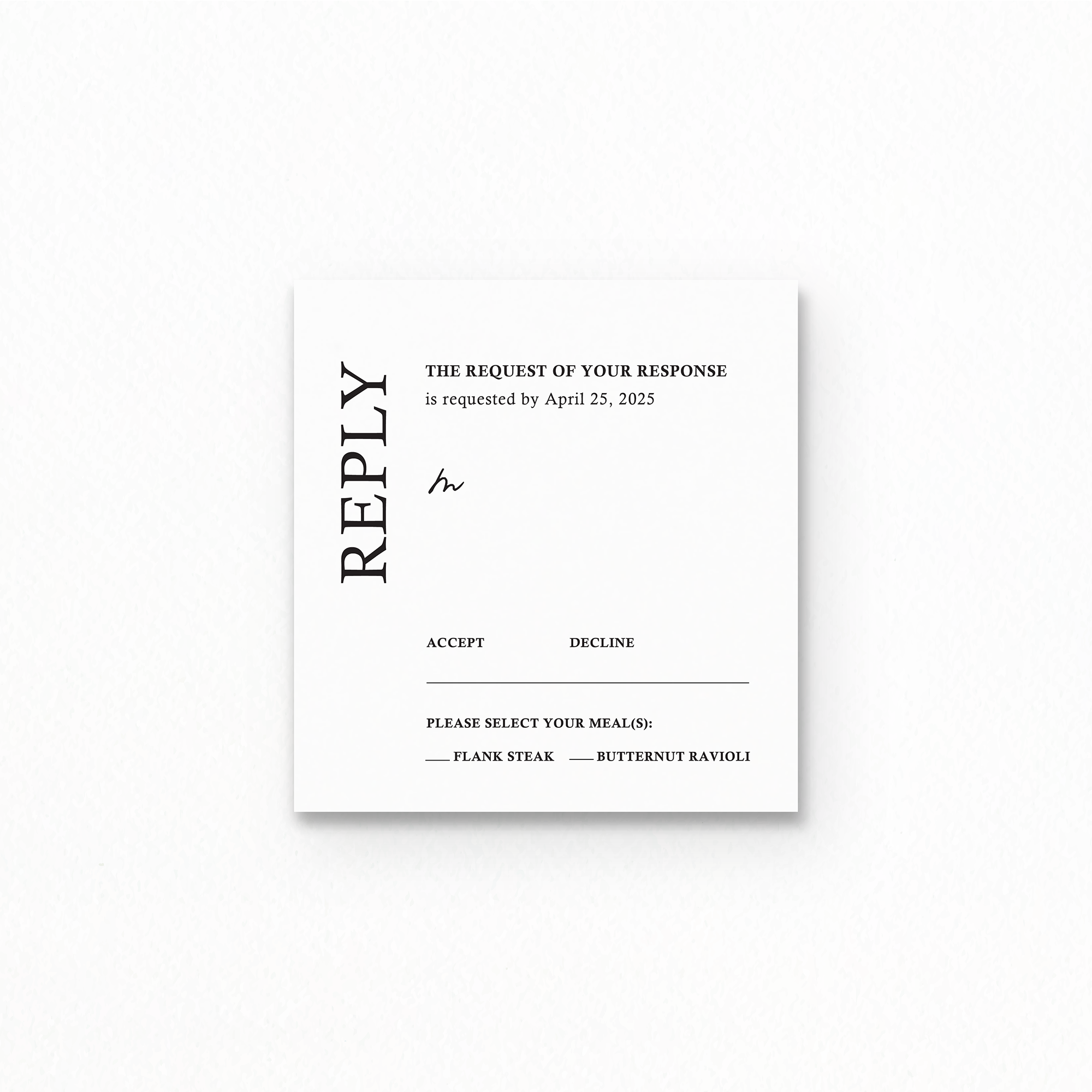 • RSVP Card Size: 5″ x 3.5″ vertical or horizontal orientation available