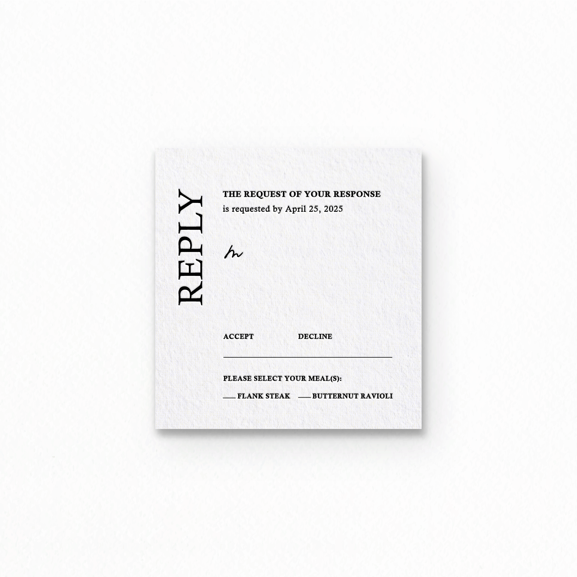 - RSVP Card Size: 5″ x 3.5″ vertical or horizontal orientation available