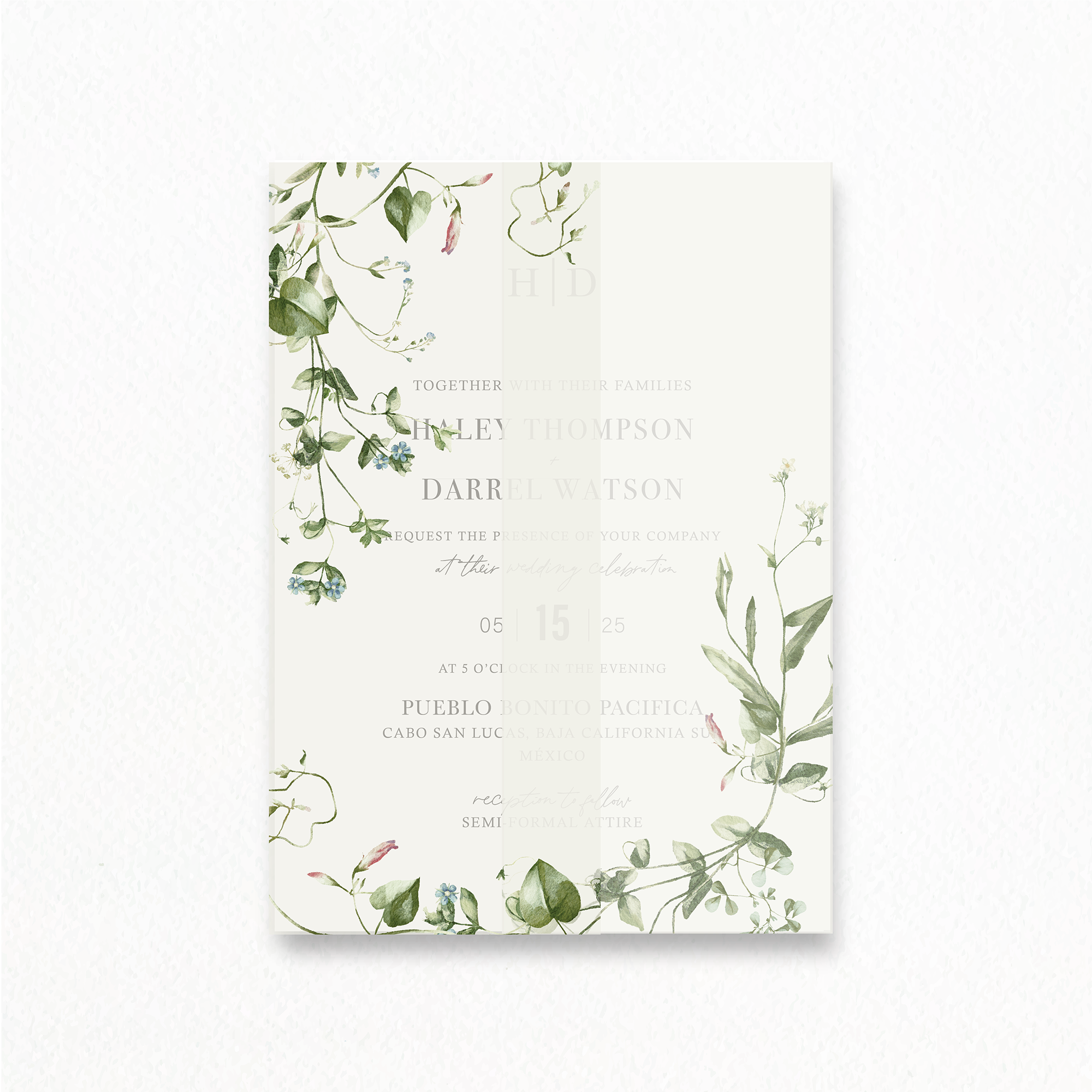 Complete your wedding invitation suite with a sophisticated vellum wrap. This translucent layer adds a refined touch to your design. Pair it with a ribbon or wax seal for an extra dose of elegance!