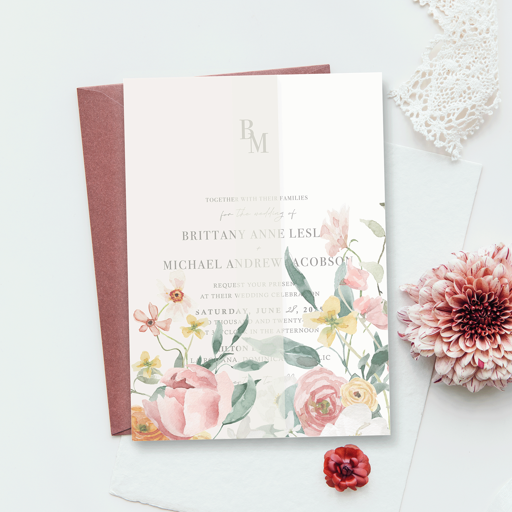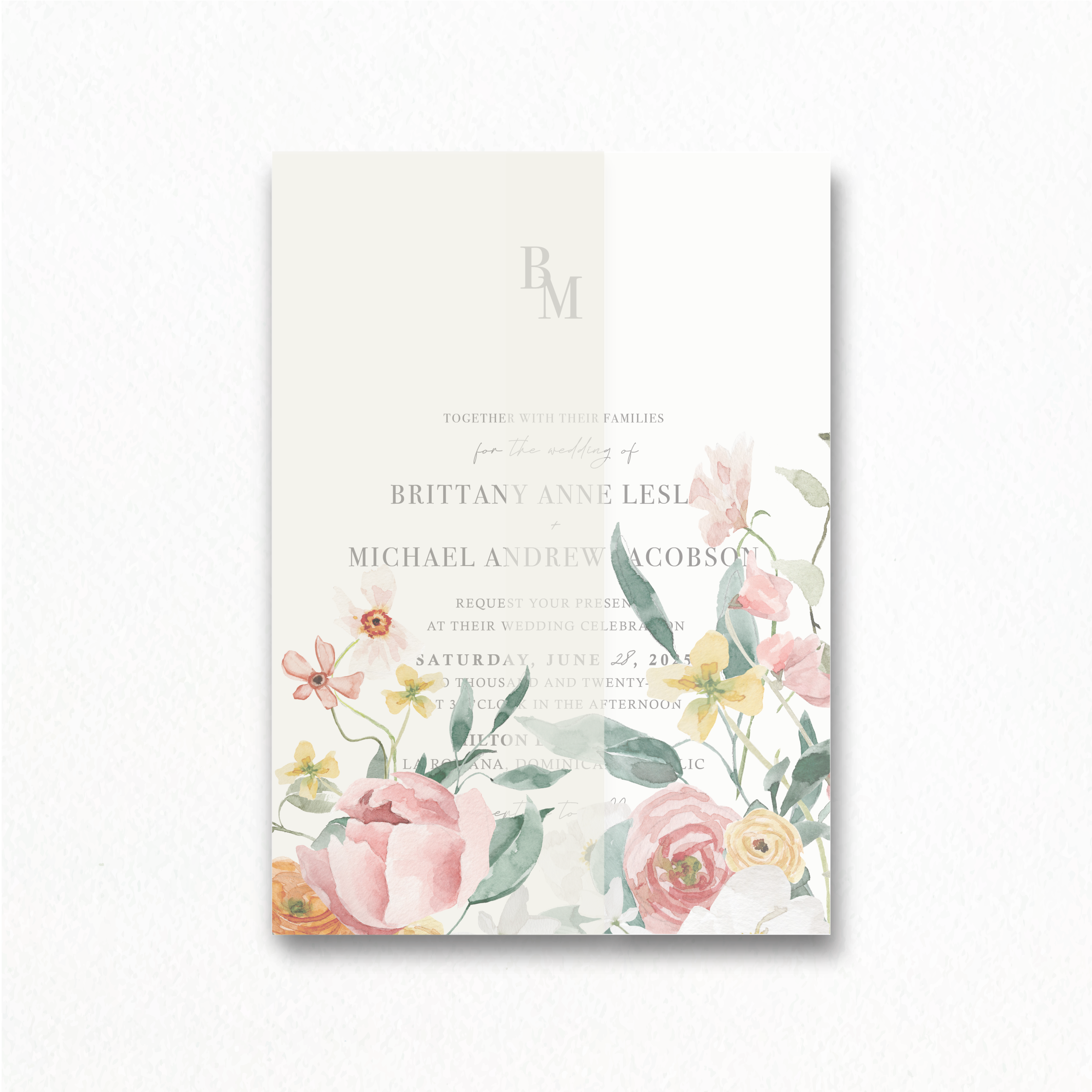 Complete your wedding invitation suite with a sophisticated vellum wrap. This translucent layer adds a refined touch to your design. Pair it with a ribbon or wax seal for an extra dose of elegance!