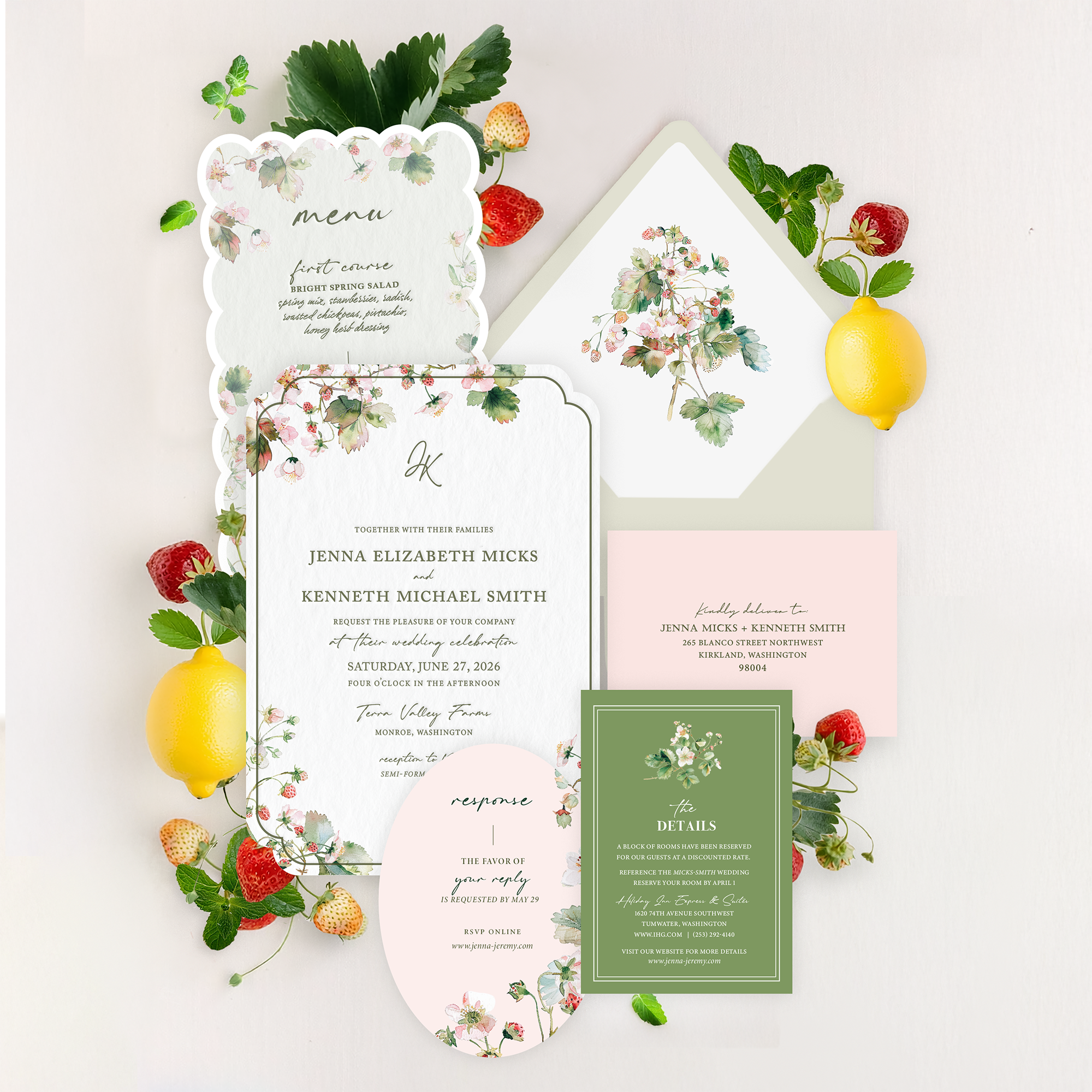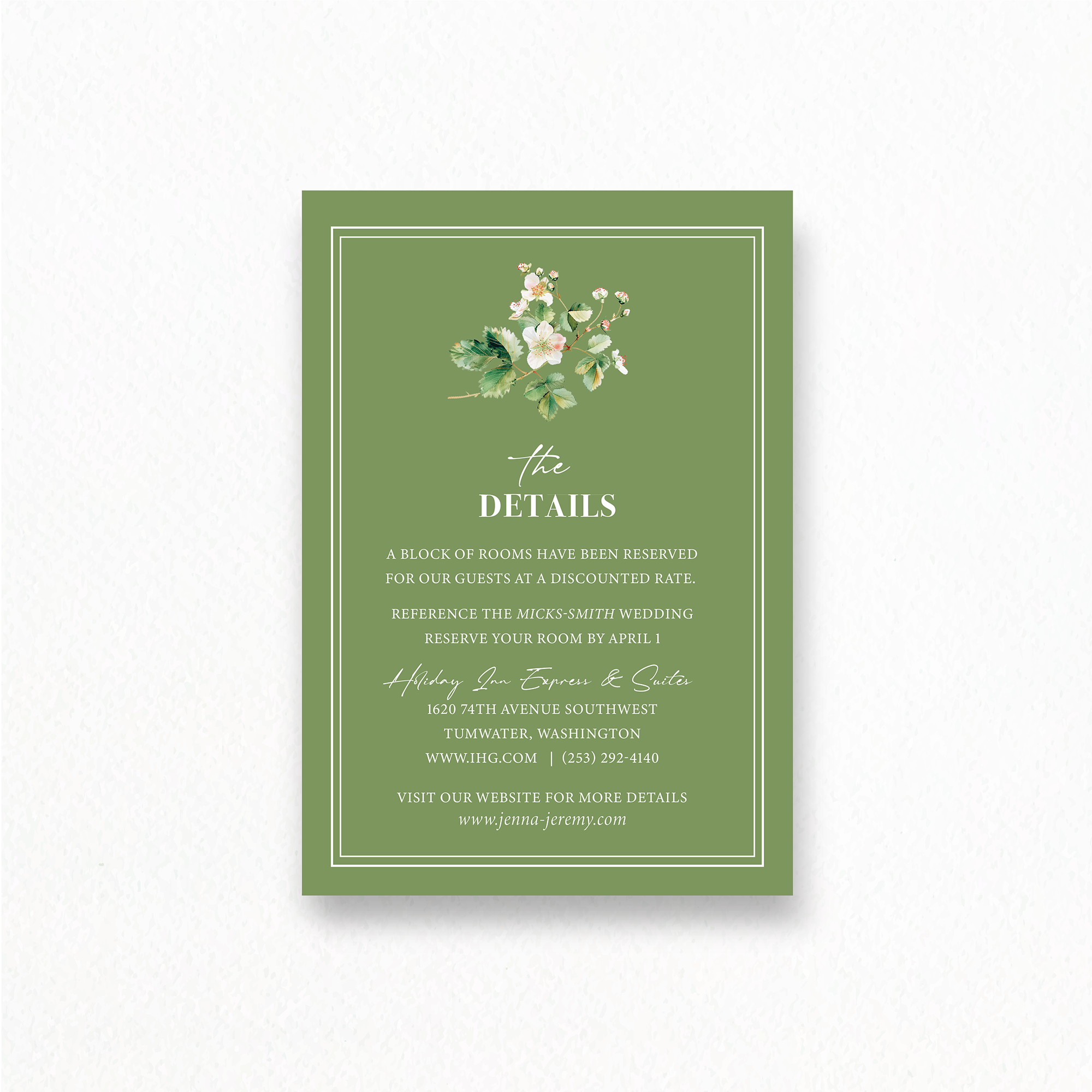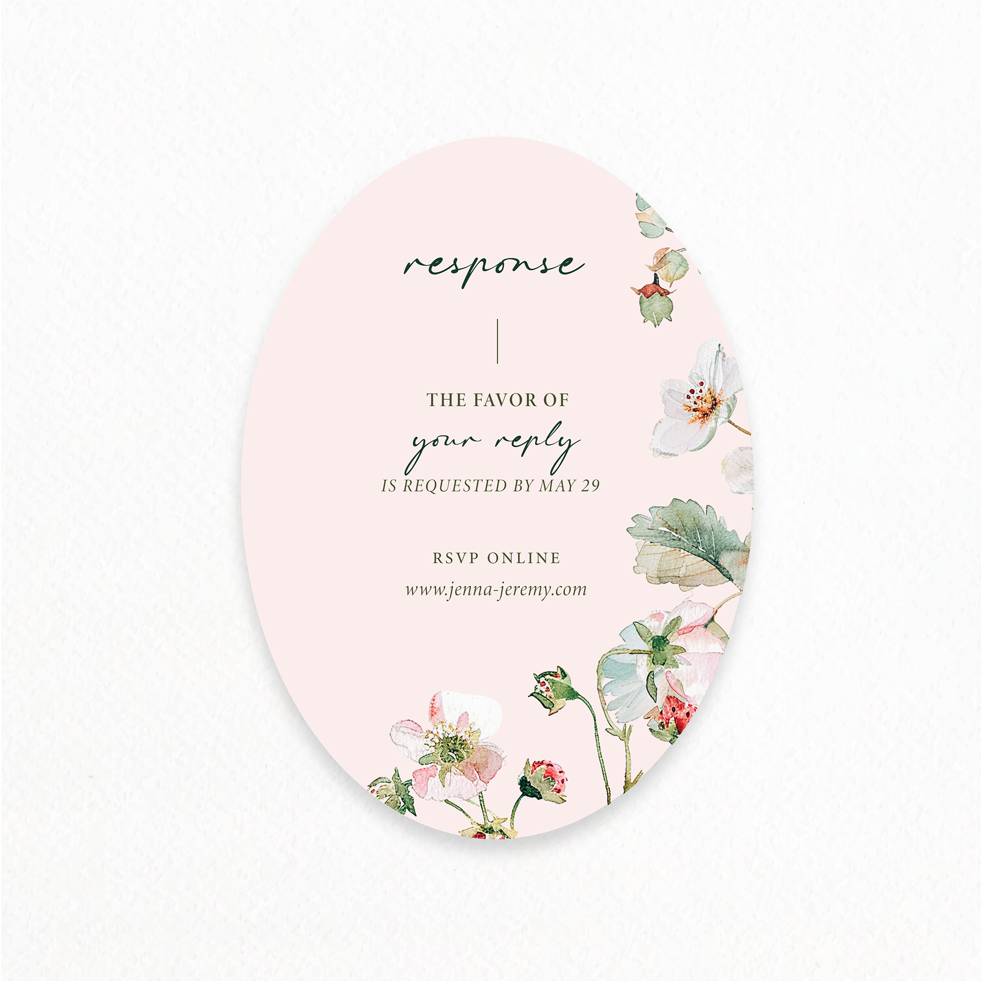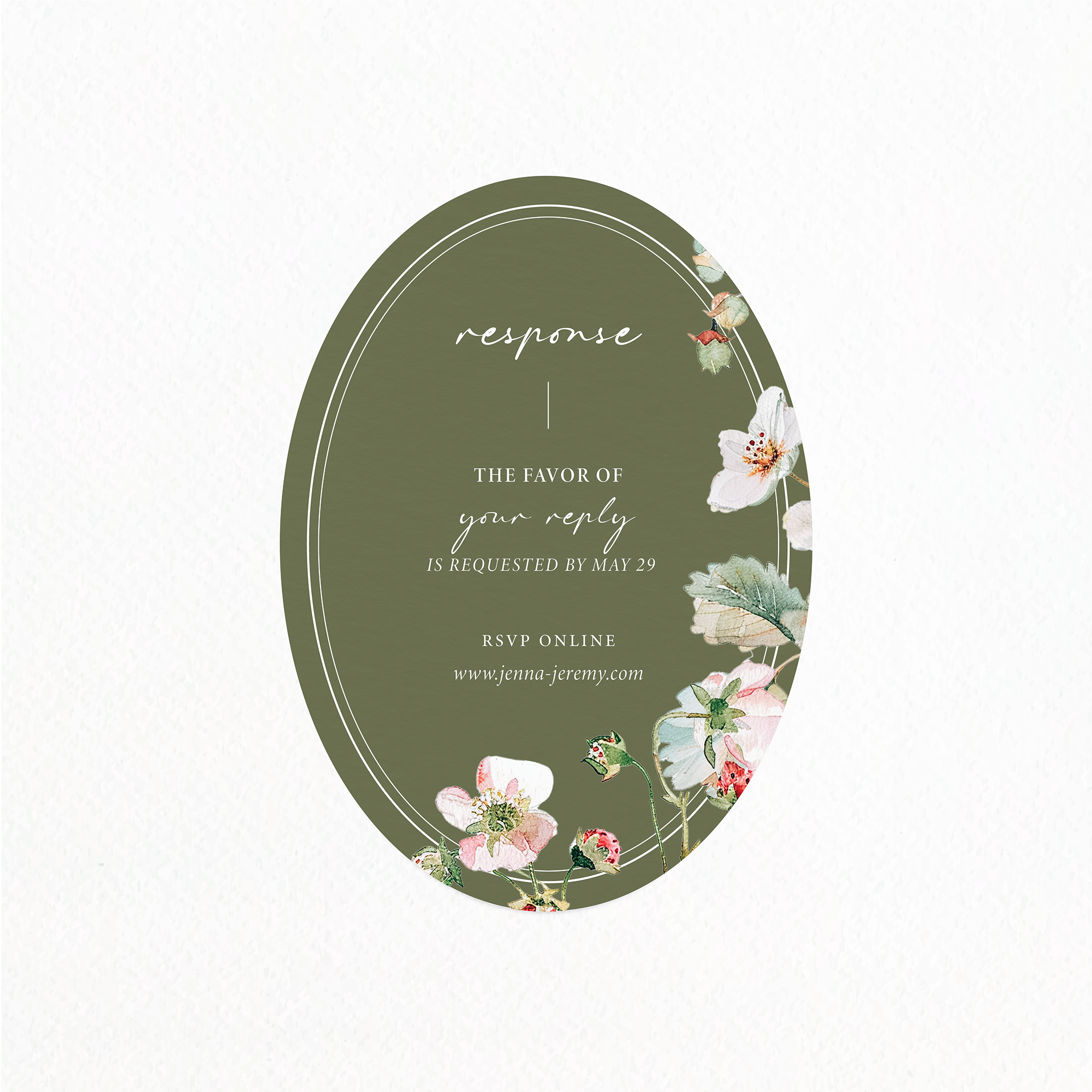 - RSVP Card Size: 5″ x 3.5″ vertical or horizontal orientation available